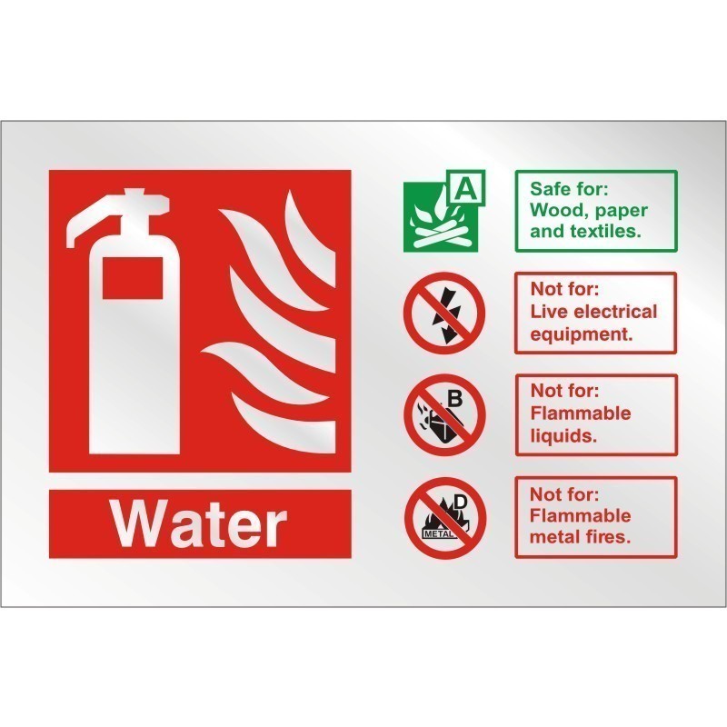 / Brushed Aluminium Water Fire Extinguisher ID Sign