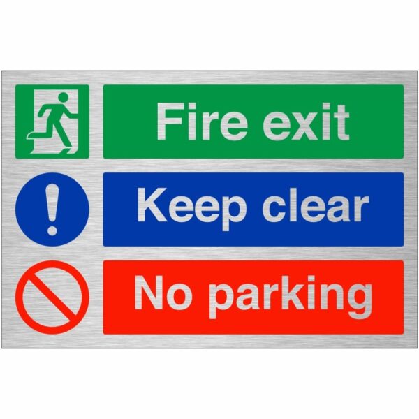 Fire Exit Keep Clear No Parking Brushed Aluminium Sign