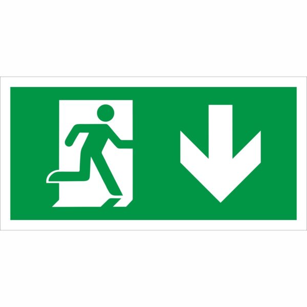 A Fire Exit Symbol Only with Arrow Down Sign indicates a direct route to an emergency exit, guiding individuals to move straight ahead for safe evacuation.