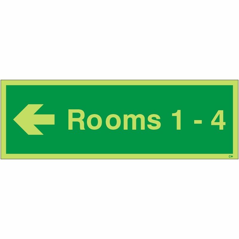 Rooms 1-4 (Arrow Left): Wayfinding Room Indicator Sign designed to meet the latest Fire Safety Regulations, helping Fire and Rescue Services identify room locations within a block or tower. (Compliant with the latest Fire Safety (England) Regulations 2022).