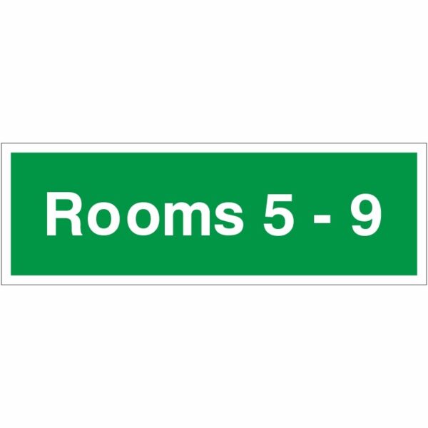 Rooms 5-9: Wayfinding Room Indicator Sign designed to meet the latest Fire Safety Regulations, helping Fire and Rescue Services identify room locations within a block or tower. (Compliant with the latest Fire Safety (England) Regulations 2022).